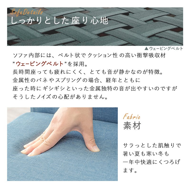 主材:天然木、張地:ポリエステル、クッション材:ウレタンフォーム、原産国:マレーシア製
