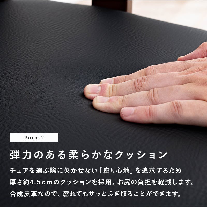 主材:ラバーウッド、張地:合成皮革、クッション材:ウレタンフォーム、原産国:ベトナム製