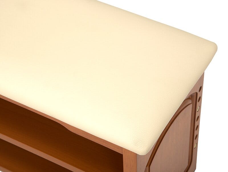 フレーム:天然木(ラバーウッド)、棚:プリント化粧繊維板、張地:合成皮革、原産国:ベトナム製
