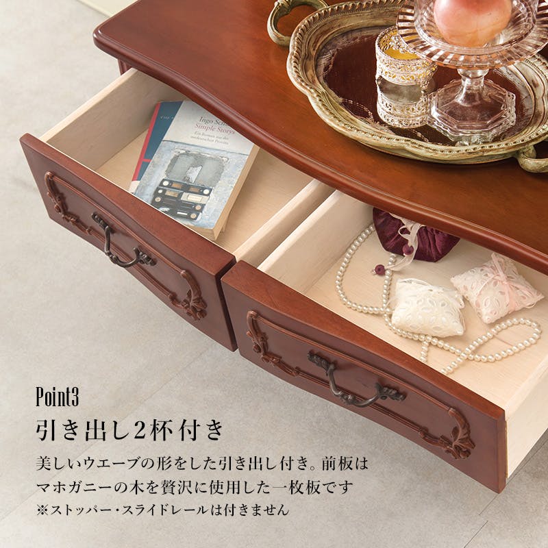 主材:天然木、天板:天然木化粧繊維板、原産国:インドネシア製