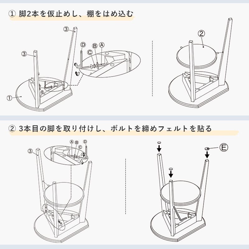 ネジはゆるまないようにしっかりと締めて、ぐらつきがないか確認してからご使用ください。また、定期的(1ケ月に1回程度)に点検してください。ネジのゆるみは、破損、転落の原因となるため大変危険です。家具の上に立ったり、とんだり、踏台代りに使ったり、不安定な姿勢で掛けたりしないでください。安定をくずし、倒れてけがをすることがあります。その他、付属の説明書をよくお読みください。