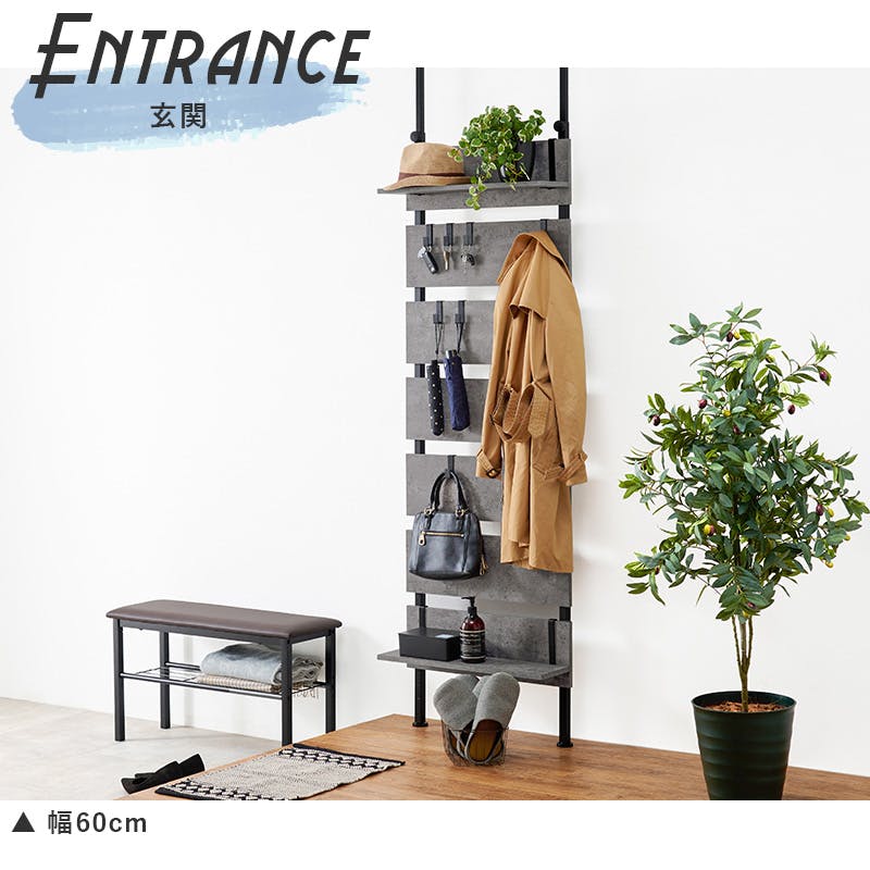 ■商品外寸サイズ:(約)幅60×奥行21.5×高さ200~265cm■内寸及び補足説明・組立式・棚板2枚・フック7ケ付