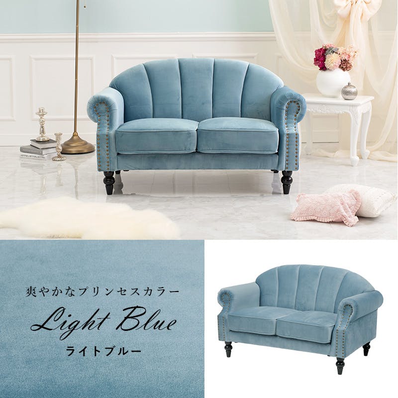 • 萩原スリーアイ HAGIHARA ソファ ルコ2P-LBL ライトブルー 二人掛け 4934257286619【別送品】