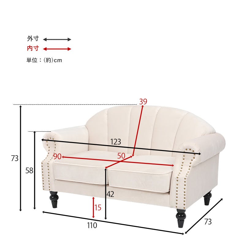 ■商品外寸サイズ:(約)幅123×奥行73×高さ73×座面高42cm■内寸及び補足説明・脚部組立式・座面:Sバネ
