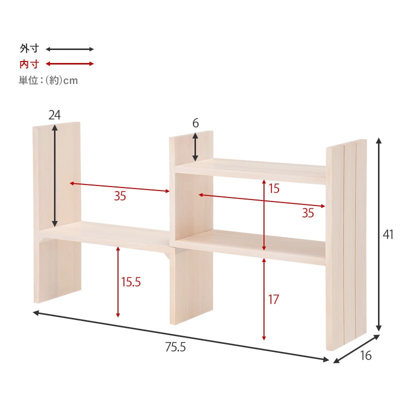 ■商品外寸サイズ:(約)幅40~75.5×奥行16×高さ41cm
