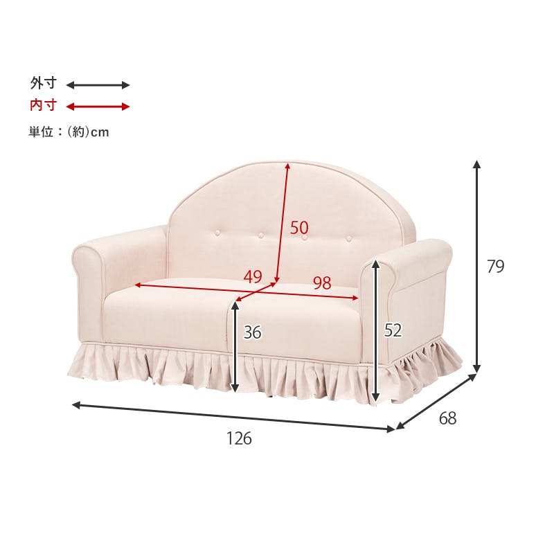 ■商品外寸サイズ:(約)幅126×奥行68×高さ79×座面高36cm■内寸及び補足説明・組立式