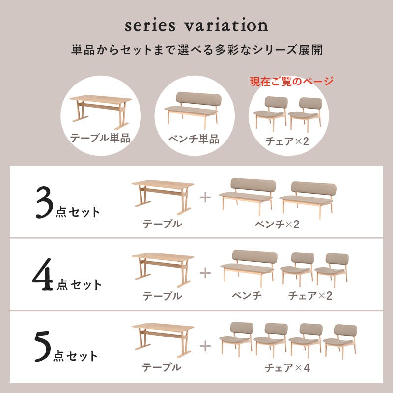 主材:天然木(ビーチ材)、張地:ポリエステル、クッション材:ウレタンフォーム、原産国:マレーシア製