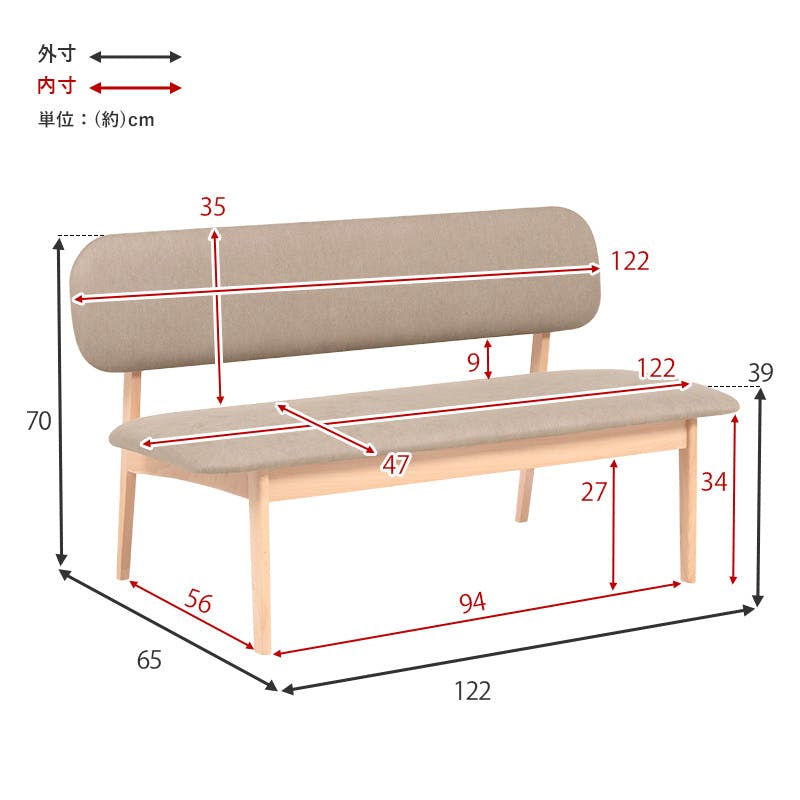 ■商品外寸サイズ:(約)幅122×奥行65×高さ70×座面高39cm■内寸及び補足説明・組立式