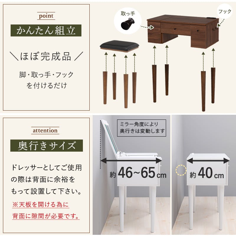 主材:メラミン樹脂化粧繊維板、脚部:天然木、原産国:中国製