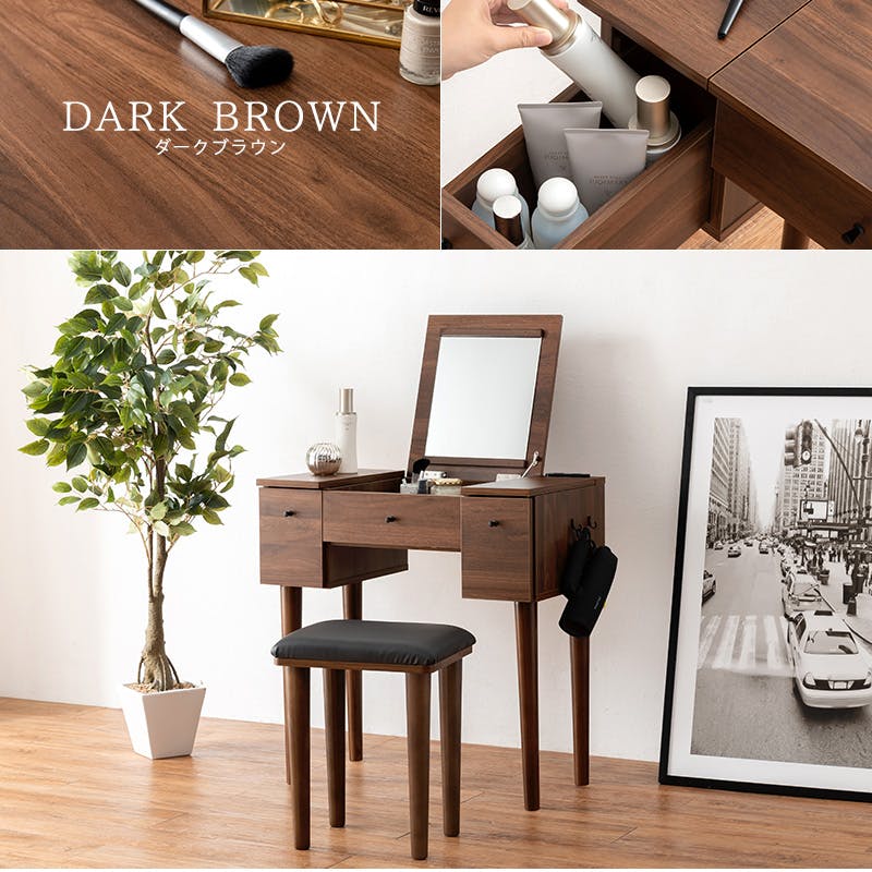 萩原スリーアイ HAGIHARA ドレッサー MD-6588DBR ダークブラウン 幅69cm 4934257296571【別送品】