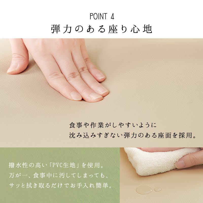 主材:天然木、張地:合成皮革、座面:ウレタンフォーム、原産国:タイ製