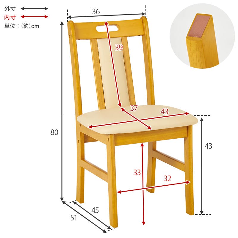 主材:ラバ-ウッド、張地:合成皮革、座面:ウレタンフォーム、原産国:ベトナム製