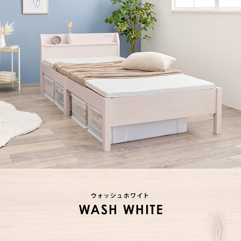 萩原スリーアイ HAGIHARA 組立簡単 宮付きシングルベッド MB-5195SWS ホワイトウォッシュ 宮棚・コンセント付き 4934257303262【別送品】