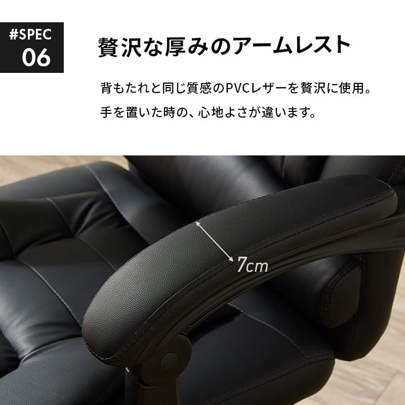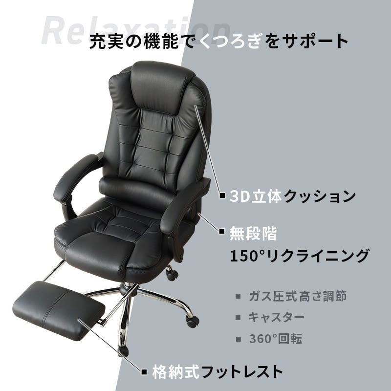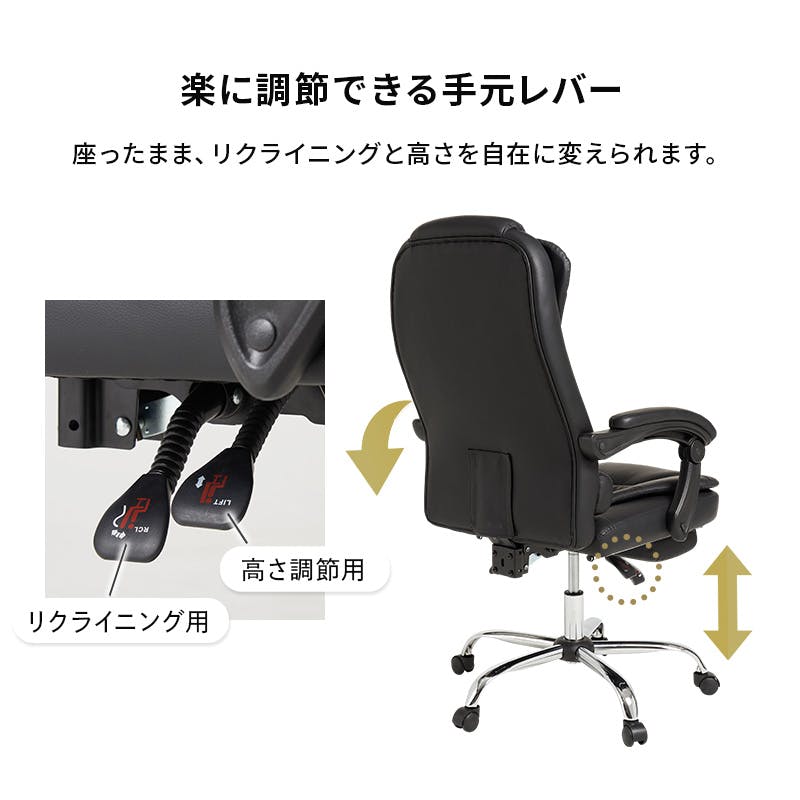 ■商品外寸サイズ:(約)幅63(脚部:72)×奥行74~155×高さ81~121×座面高47~57cm■内寸及び補足説明・組立式・キャスター付・360°回転式・ガス圧昇降式・無段階リクライニング・格納式フットレスト付