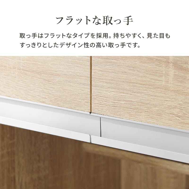 主材:プリント紙化粧パーティクルボード、天板・スライド棚:合成樹脂化粧パーティクルボード、取手:スチール、原産国:ベトナム製