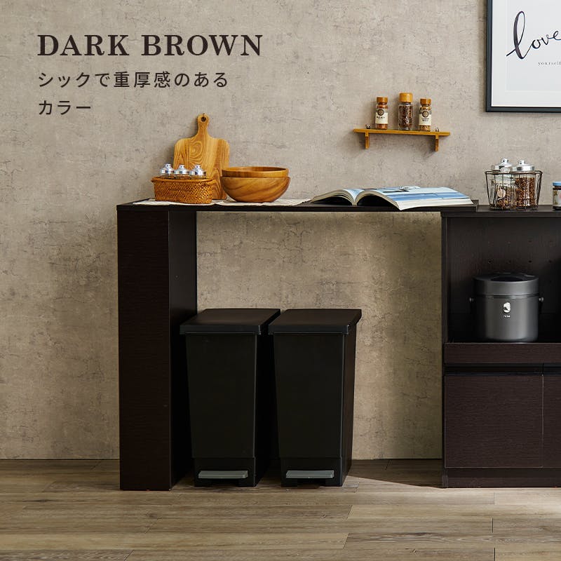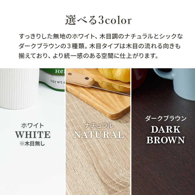 主材:プリント紙化粧パーティクルボード、天板・スライド棚:合成樹脂化粧パーティクルボード、原産国:ベトナム製