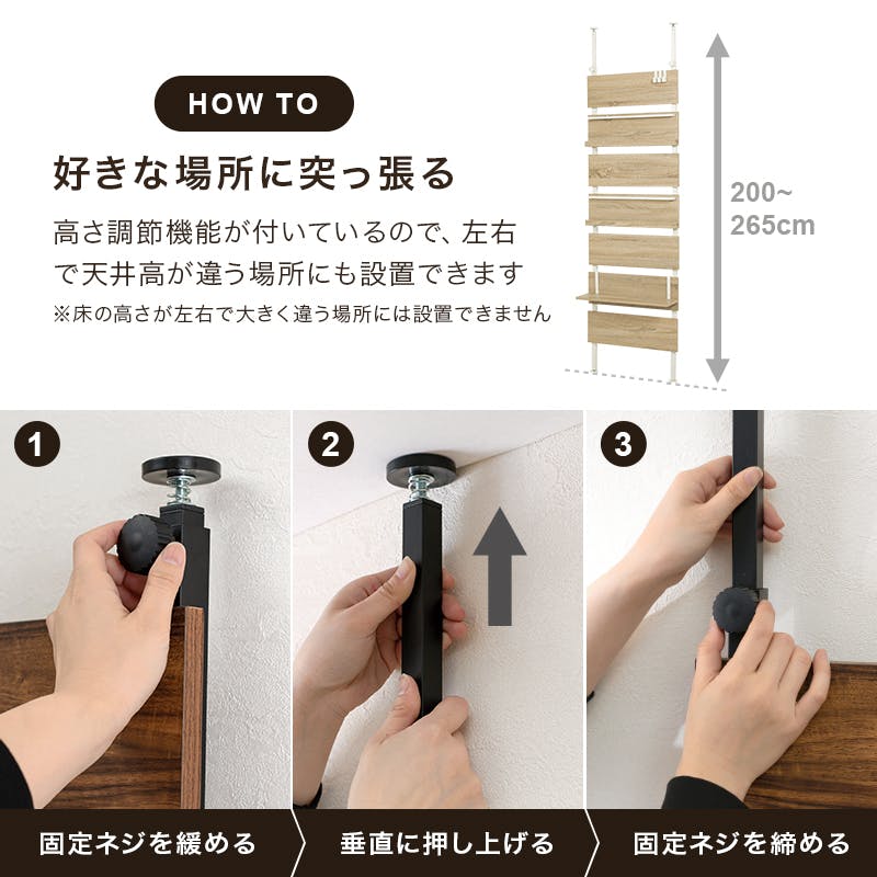 ■商品外寸サイズ:(約)幅60×奥行21.5×高さ200~265cm■内寸及び補足説明・組立式