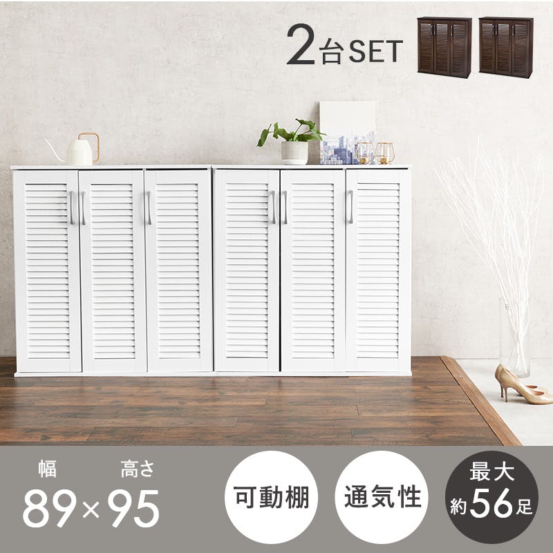 萩原スリーアイ HAGIHARA ルーバーシューズラック2点セット RSR-1701NA-2S ナチュラル 幅89cm 4934257313209【別送品】