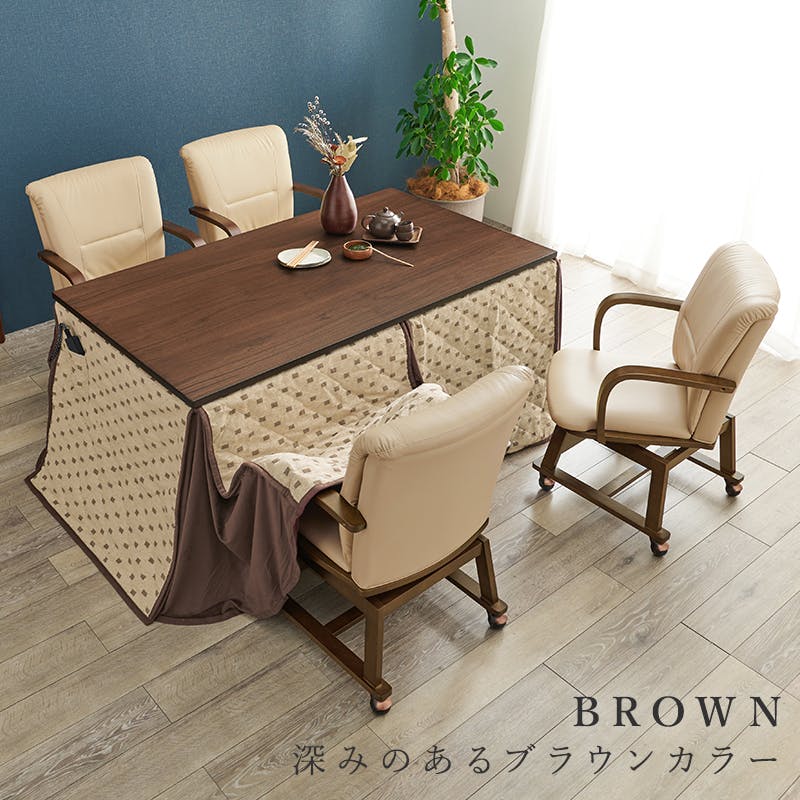 天板:<ブラウン>ウォールナット突板<ナチュラル>アッシュ突板、塗装:ウレタン樹脂塗装(UV加工) 、ヒーター:NN-8065 600W石英管ヒーター(手元コントローラー)、ふとん:<表地>ポリエステル75%・綿25%<裏地>ポリエステル、チェア:天然木、合成皮革、原産国:本体:マレーシア製、ヒーター:中国製、布団:中国製、チェア:タイ製