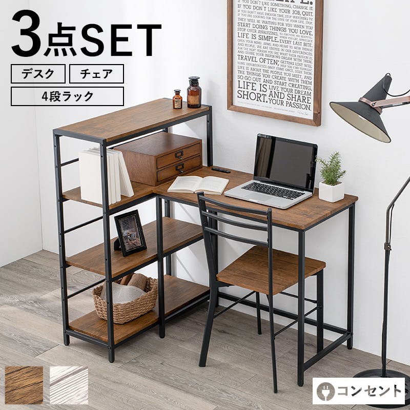 萩原スリーアイ HAGIHARA デスクチェア3点セット LDC-4697WH-4RS ホワイト デスク小+4段ラック+チェアの3点セット コンセント付き 3000000038 デスク ユニットデスク 4934257292931【別送品】