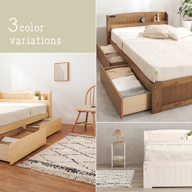 萩原スリーアイ HAGIHARA 引出し付セミダブルベッド MB-5039SD-WS ホワイトウォッシュ 宮棚・コンセント付き 3000001818 ベッド ベッドフレーム 4934257308816【別送品】