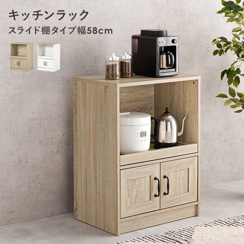 萩原スリーアイ HAGIHARA キャビネット RCC-1638WS ナチュラル/ホワイト 幅58cm スライド棚タイプ 3000002448 収納家具 キッチン収納 4934257315128【別送品】