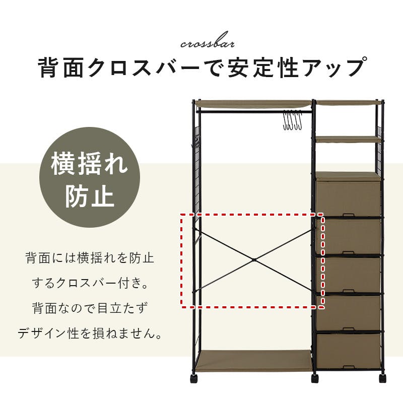 萩原スリーアイ HAGIHARA ハンガーラック KHR-3189WH ホワイト 幅105cm 引き出し5杯付き 3000002476 収納家具 クローゼット ワードローブ 4934257315401【別送品】