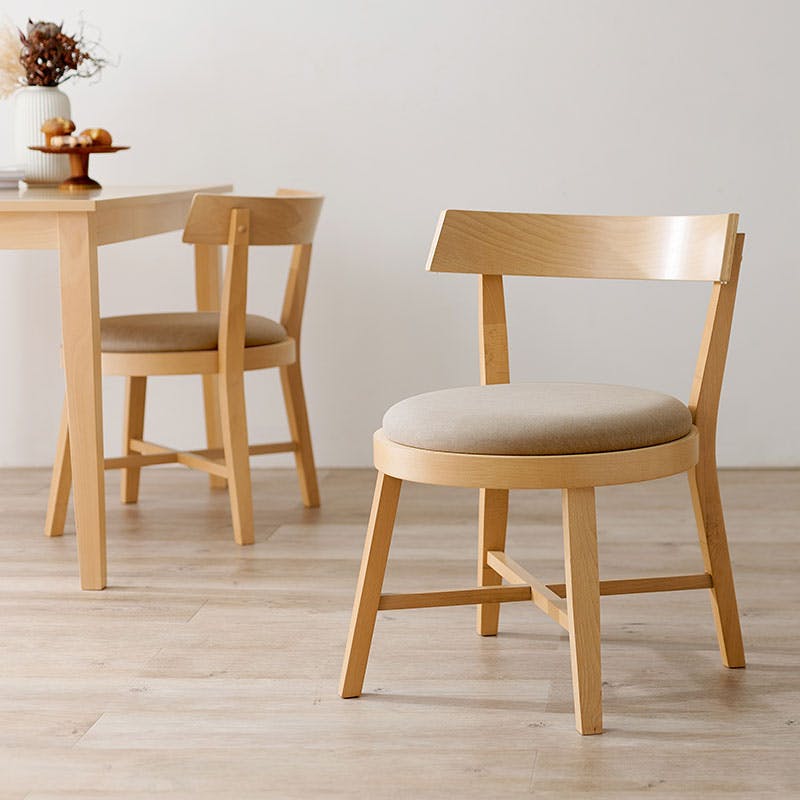 主材:ビーチ集成材、張地:ポリエステル マレーシア製