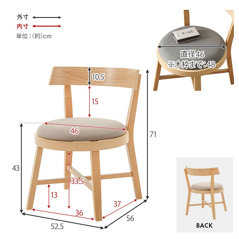 ■サイズ詳細:(約)幅52.5×奥行56×高さ71×座面高43cm