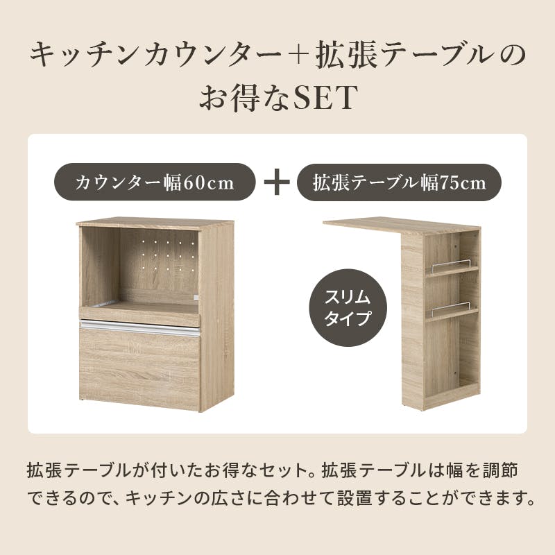 萩原スリーアイ HAGIHARA 伸縮キッチンカウンター(収納庫タイプ) VKC-7141NAOS ナチュラル 幅75~125cm 2口コンセント付き 3000002646 収納家具 キッチン収納 4934257317108【別送品】