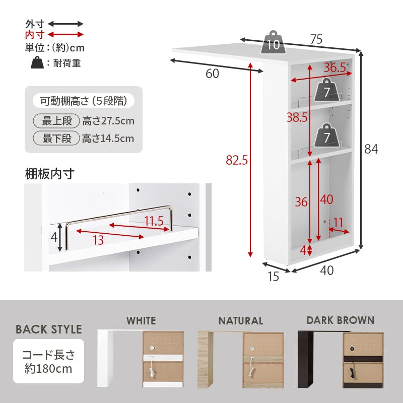■サイズ詳細:(約)幅75~125×奥行40×高さ84cm