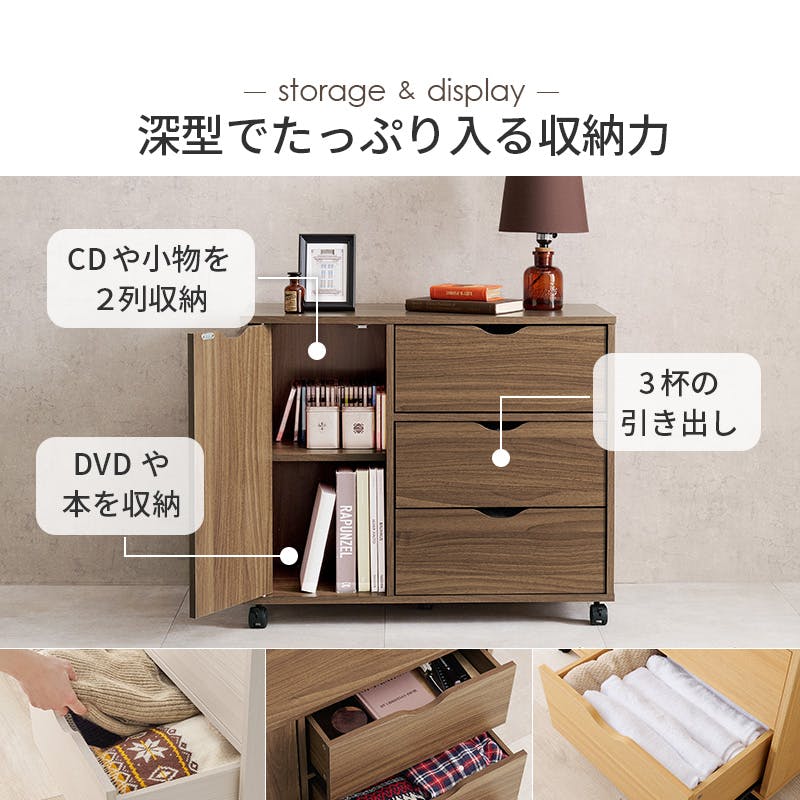 萩原スリーアイ HAGIHARA キャスター付きチェスト RCC-1552BR ブラウン 幅80cm 3000002689 収納家具 タンス チェスト 4934257317535【別送品】