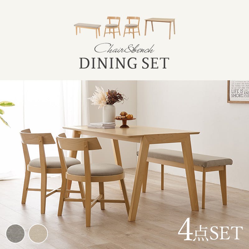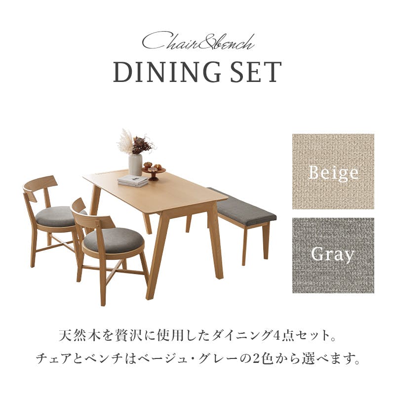 ■サイズ詳細:テーブル:(約)幅120×奥行75×高さ70cmチェア:(約)幅52.5×奥行56×高さ71×座面高43cmベンチ:(約)幅100×奥行33×高さ43×座面高43cm