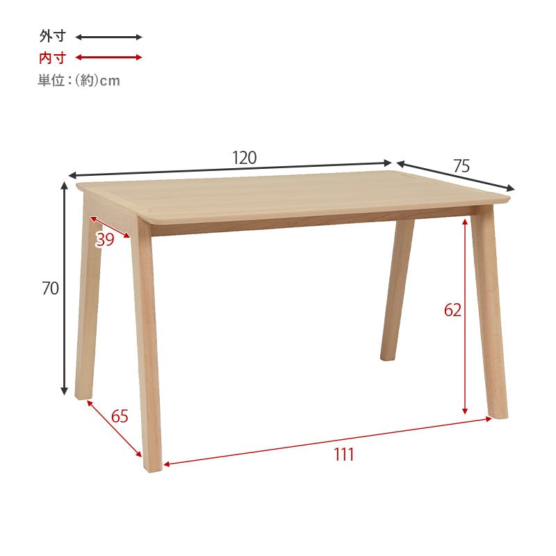 主材:ビーチ集成材、天板:天然木化粧繊維板、張地:ポリエステル マレーシア製