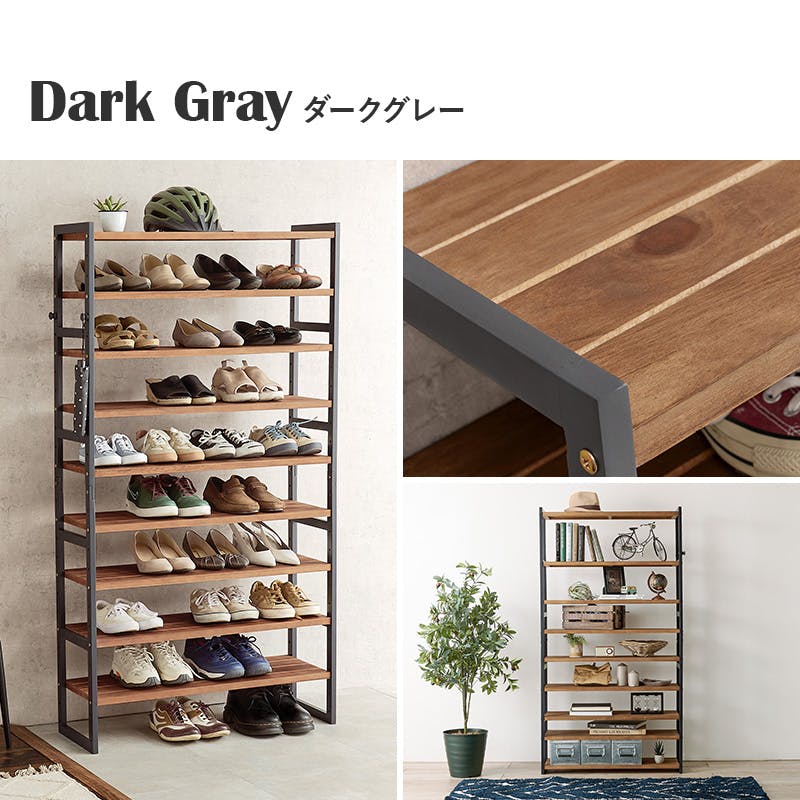 萩原スリーアイ HAGIHARA シューズラック MSS-6718NDG ダークグレー 幅85cm 可動棚9段 3000003033 収納家具 シューズラック 4934257320979【別送品】