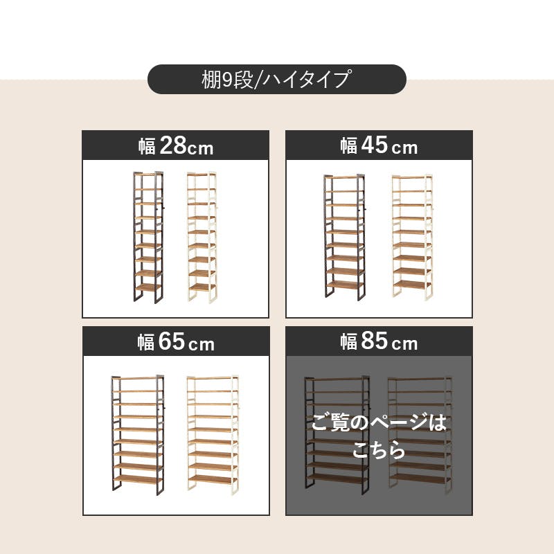 ■組立式■フック2個付■可動棚:9枚(6cmピッチ)■1個口■梱包サイズ:86×33×29