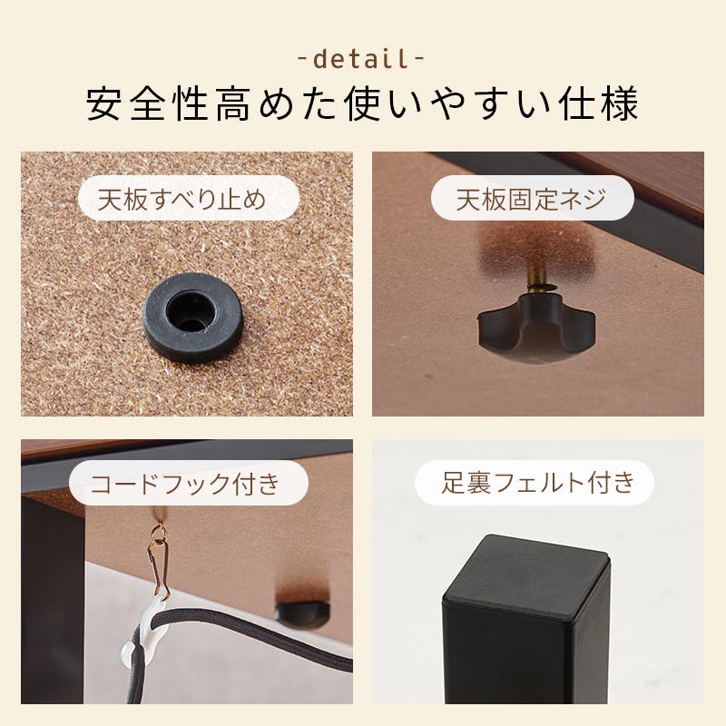 天板:合成樹脂化粧繊維板、脚部:樹脂、ヒーター:NCH-302 300W石英管(中間スイッチ) ベトナム製
