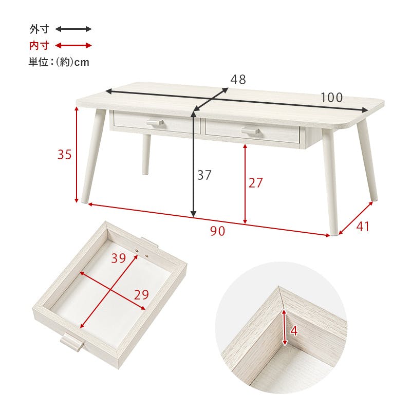■サイズ詳細:(約)幅100×奥行48×高さ37cm