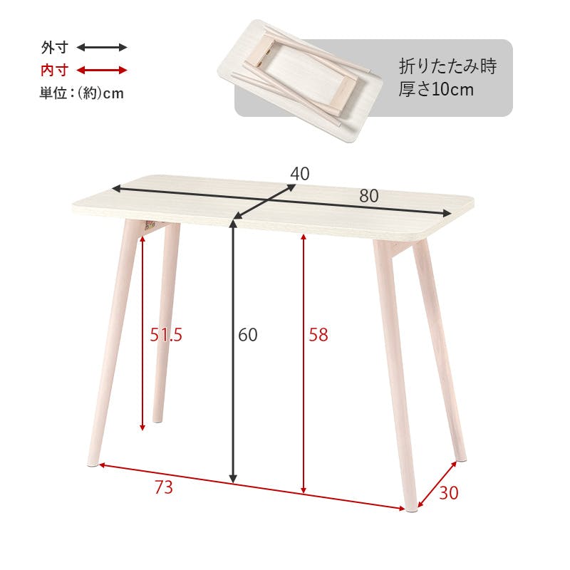 天板:合成樹脂化粧繊維(メラミン)、脚部:天然木(樺材) 中国製