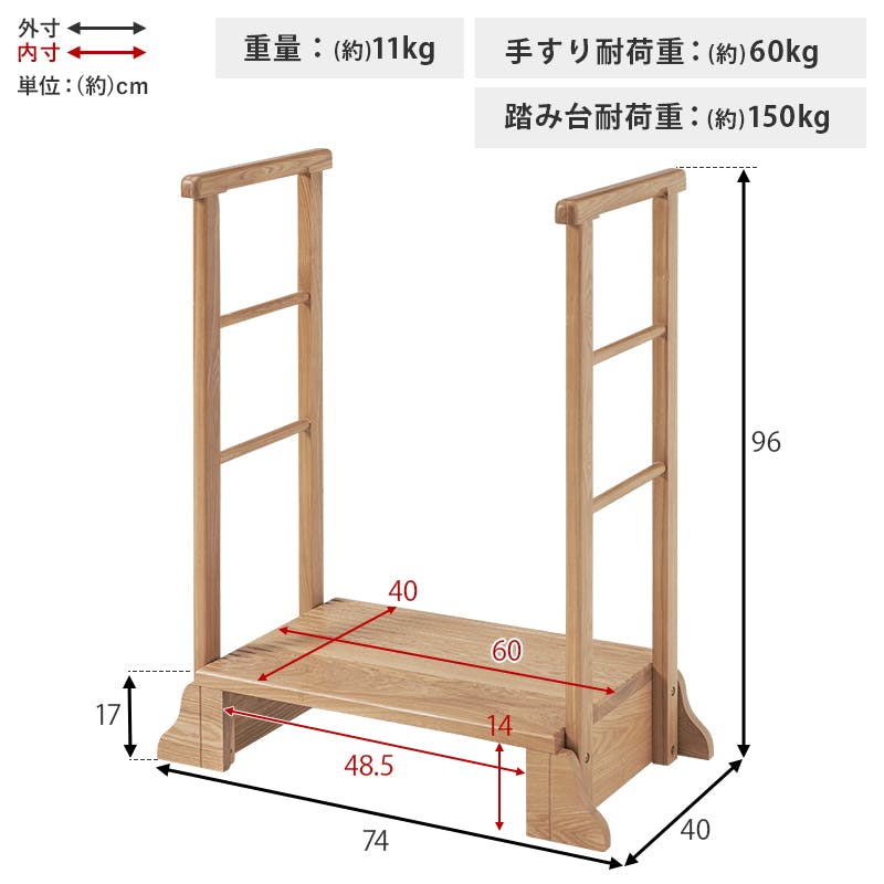■サイズ詳細:(約)幅74×奥行40×高さ96×踏み台高17cm