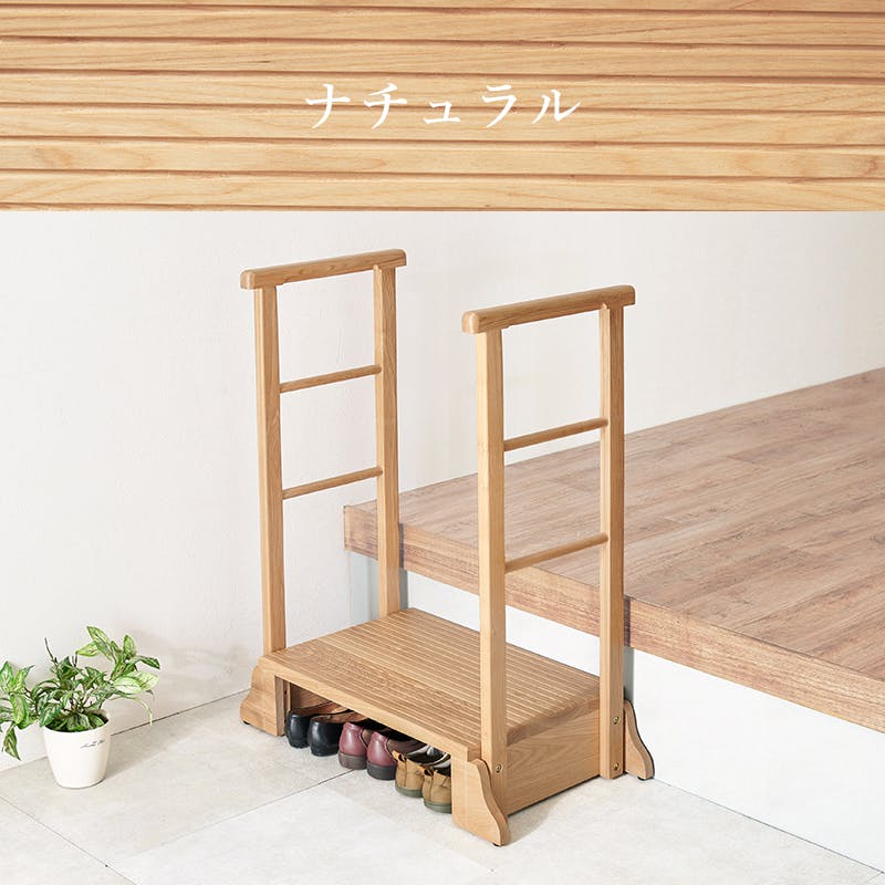 萩原スリーアイ HAGIHARA 手すり付き玄関踏み台(両側手すり) MFD-6908NA ナチュラル 幅74cm 3000003214 収納家具 玄関台 4934257322805【別送品】