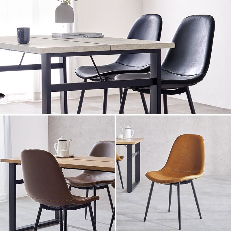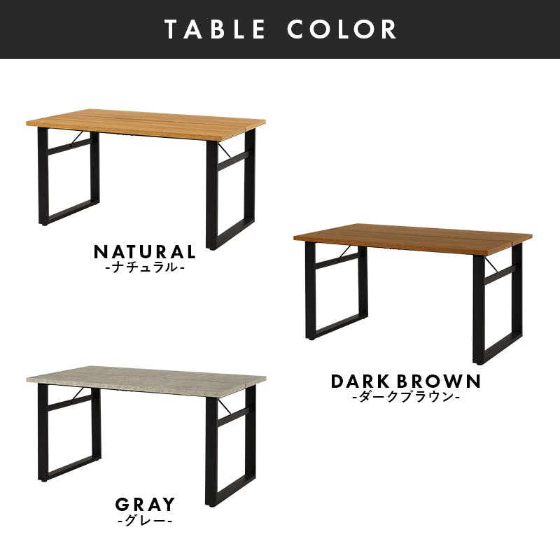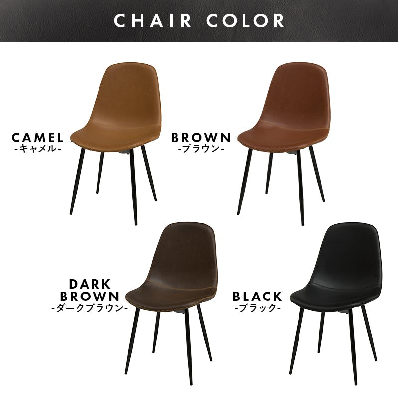 天板:合成樹脂化粧繊維板(メラミン樹脂)、座面:積層材、張地:合成皮革、クッション材:ウレタンフォーム、脚部:スチール 中国製