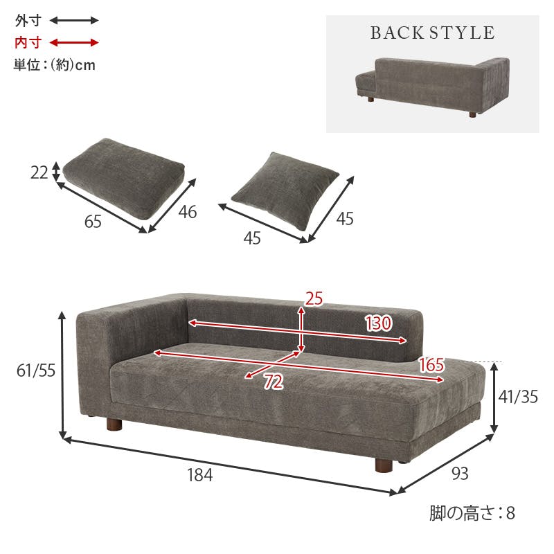 ■組立式(脚部のみ)■クッション:大×1個・小×2個付■1個口■梱包サイズ:187×95×55