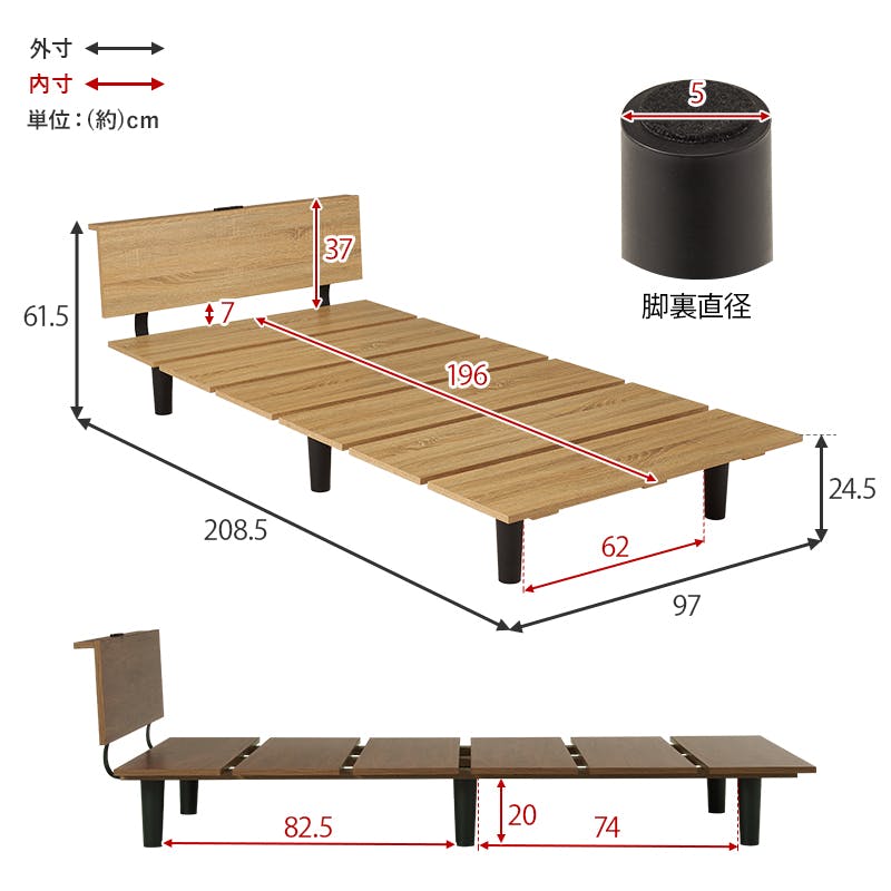 (約)幅97×奥行208.5×高さ61.5×床面高24.5cm