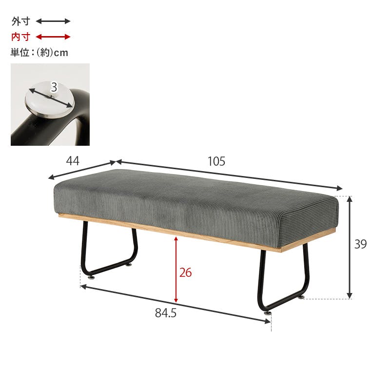 (約)幅105×奥行44×高さ39×座面高39cm