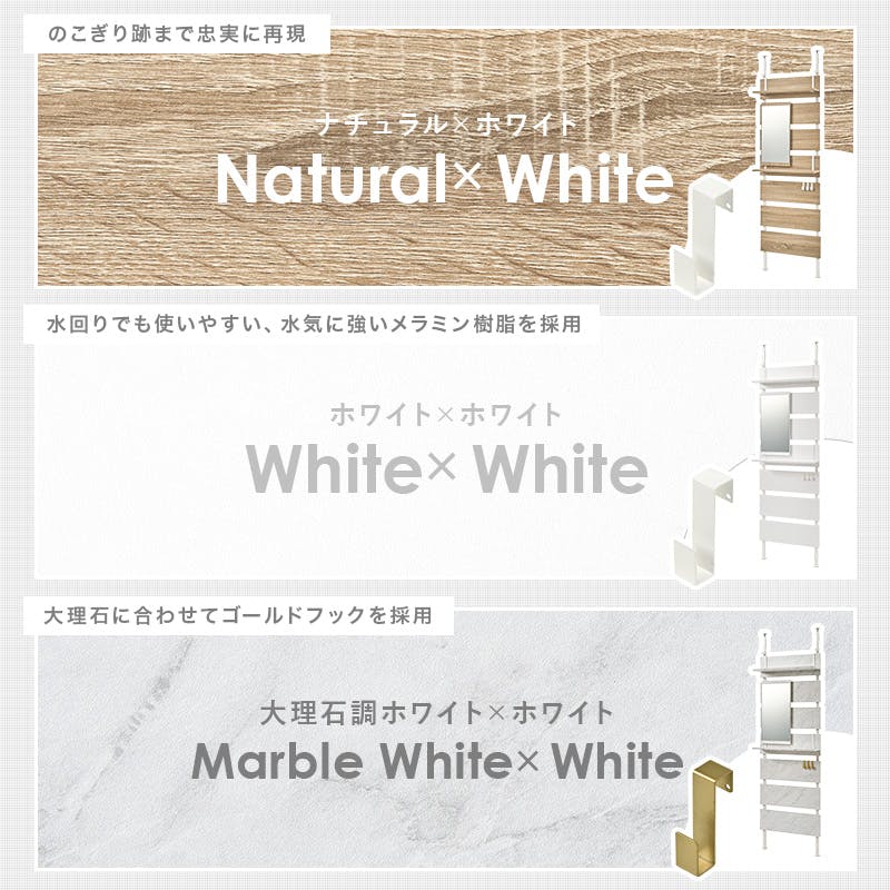 ■主材:スチール、棚板:<ホワイト/ホワイト>合成樹脂化粧繊維板(メラミン樹脂)・<ナチュラル/ホワイト><マーブルホワイト/ホワイト>プリント紙化粧繊維板■原産国:中国製