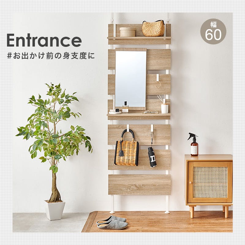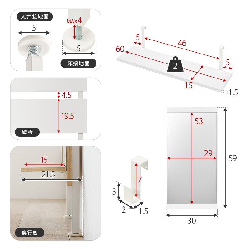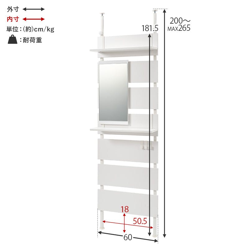 突っ張りミラー付きラック KTR-3217MWH インテリア 家具 収納 収納家具 本棚 ラック カラーボックス ウォールシェルフ 3000004137【別送品】