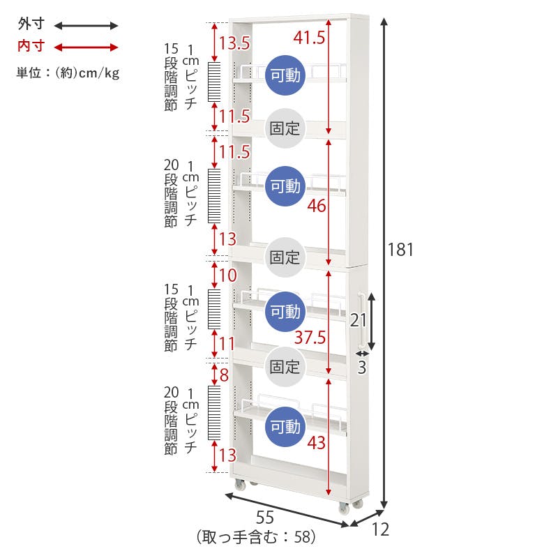 (約)幅12×奥行55(取手含む:58)×高さ181cm