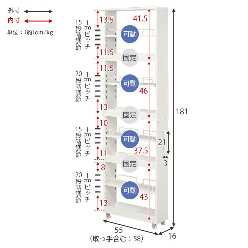 (約)幅16×奥行55(取手含む:58)×高さ181cm