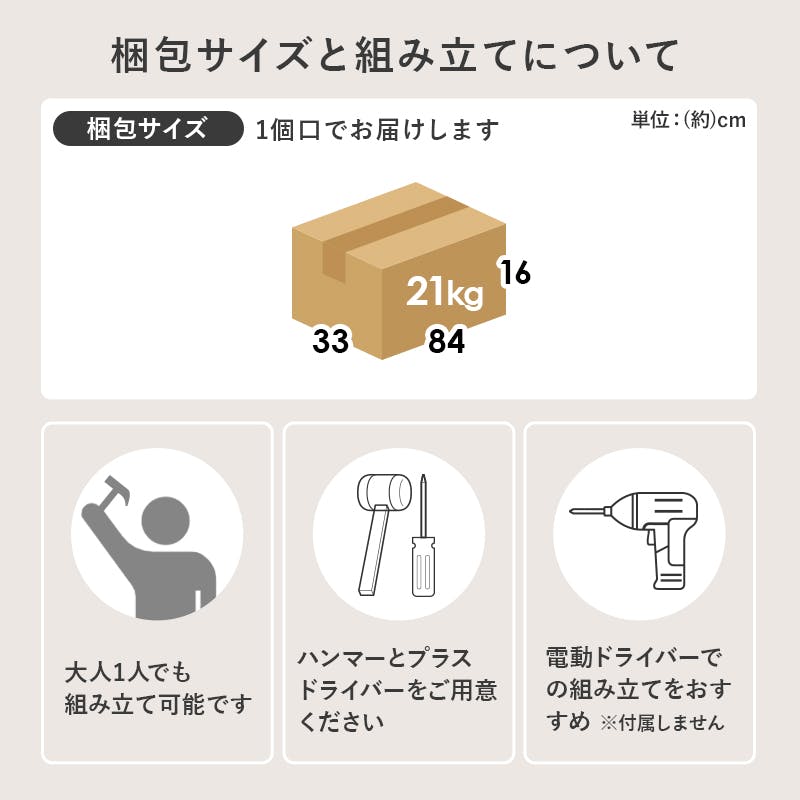 ●軒先渡し(配送業者が商品を荷受人の家の玄関や建物の入り口まで運び、そこで荷物を引き渡す配送方法です。)●必ず梱包サイズ確認いただき、搬入経路確保ください。●エレベータを使用しない階層・搬入不可時の吊り上げ作業や特殊作業等はサービスの対象外となります。追加の費用はご購入者様のご負担になりますのでご注意ください●お届け時にご不在等で再配達となる場合やお受け取りがされずに返送された場合、また長期保管となる場合は再配達料がかかる場合がございます